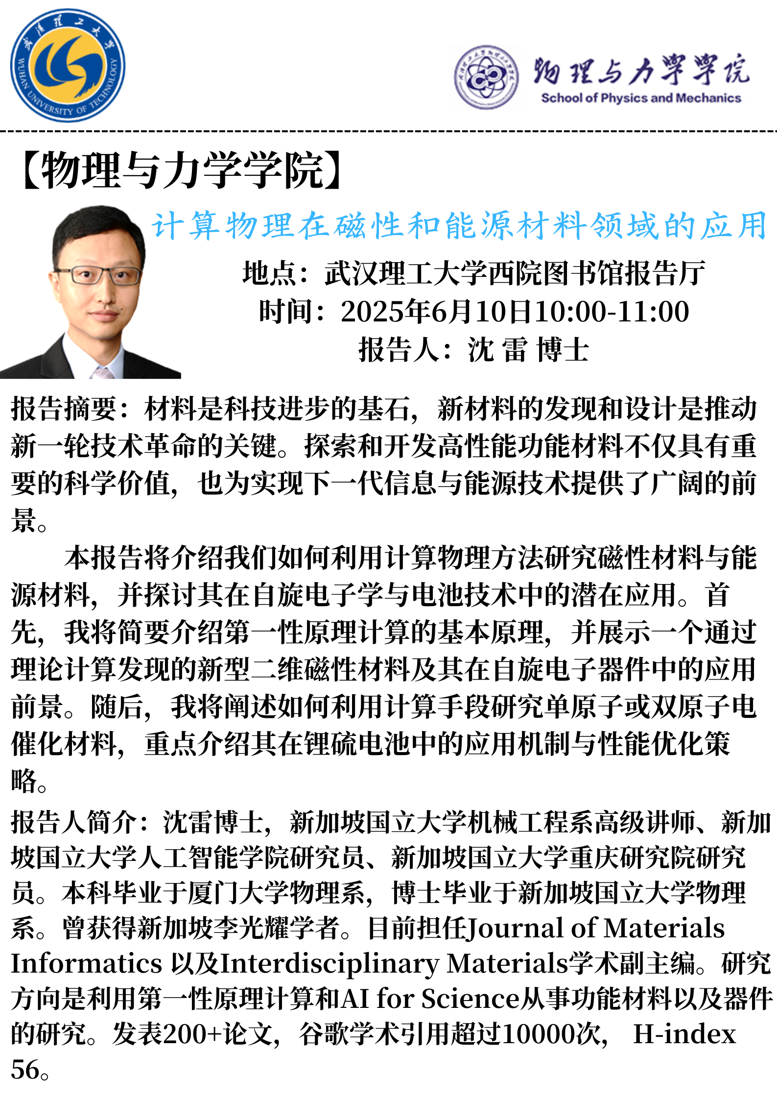 【WilliamHill体育】计算物理在磁性和能源材料领域的应用