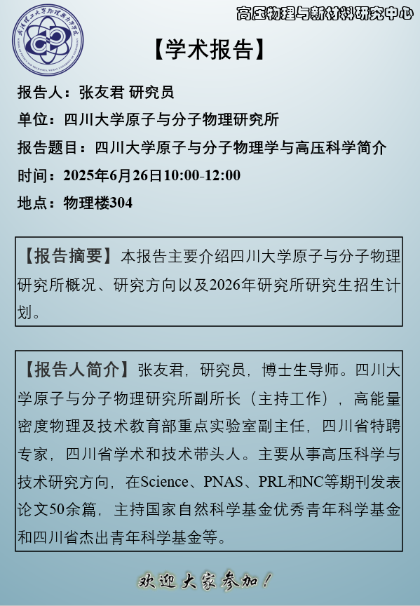 【WilliamHill体育】四川大学原子与分子物理学与高压科学简介