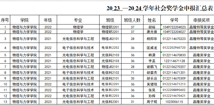 WilliamHill体育2024年“晶隆奖学金”名单公示