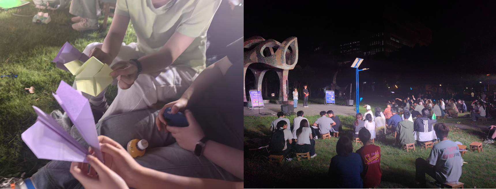 随着音乐会的推进,第八个节目《保留》的旋律缓缓流淌。表演结束后,迎来了本次音乐会别具意义的小活动——“爱己漫行”,放飞心情纸飞机。志愿者为每位观众发放了彩色的纸张,大家纷纷拿起笔,将心中的烦恼、压力一一写下。随后,大家小心翼翼地将纸折成纸飞机,在主持人的带领下,一同放飞。一只只纸飞机承载着大家的心事,向着夜空飞去,仿佛所有的烦恼也随之消散。现场不少同学表示,这个活动让他们有机会释放内心的压力,感到无比轻松。